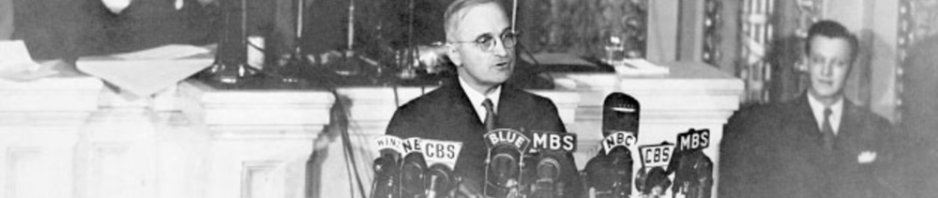 So when President Harry Truman speaks to Congress for the first time as President in 1945, he was speaking 535 men for the most part in Congress and millions of Americans, who in Congress’s case didn’t know what to expect from him. And in America’s case was hearing from their band new leader who they never even heard of.